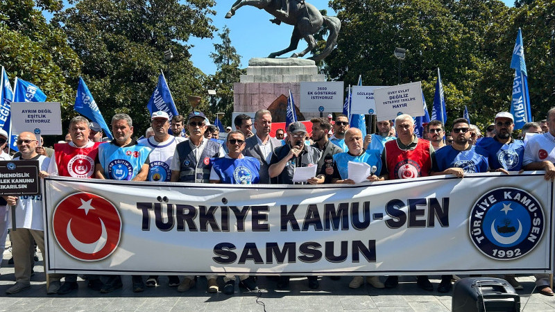 Türkiye Kamu-Sen Samsun İl Temsilciliği, iş bırakma eylemi kapsamında Onur Anıtı’nda basın açıklaması yaptı. İl Başkanı Ahmet Keskin, kamu işverenine “gerçekçi maaş artışı” çağrısında bulunarak eylemlerini sürdüreceklerini söyledi.